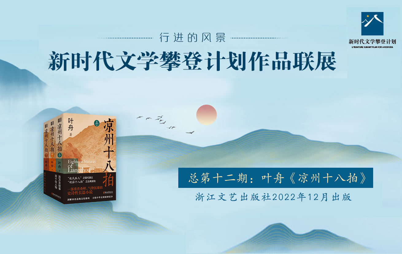 2022年,中國作家協會隆重推出“新時代文學攀登計劃”,對以長篇小說為主的優質選題提供支持,充分發揮由全國重點文藝出版社、重點文學期刊等成員單位組成的聯席會議作用,從作家創作、編輯出版、宣傳推廣、成果轉化、對外譯介等多方面統籌協調,形成聯動機制,推動新時代文學高質量發展。中國作協創研部、中國作家網聯合推出“行進的風景——新時代文學攀登計劃作品聯展”系列專題,將對計劃入選作品逐一展示、閱讀、評論、探討,并以融媒體的形式與大家攜手攀登文學高峰。2023年5月總第十二期,讓我們一道走進葉舟的《涼州十八拍》。(本期主持人:鄧潔舲 納楊)