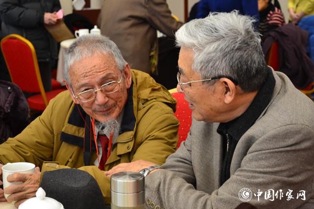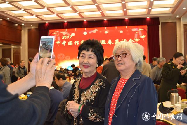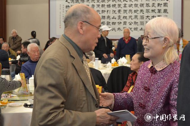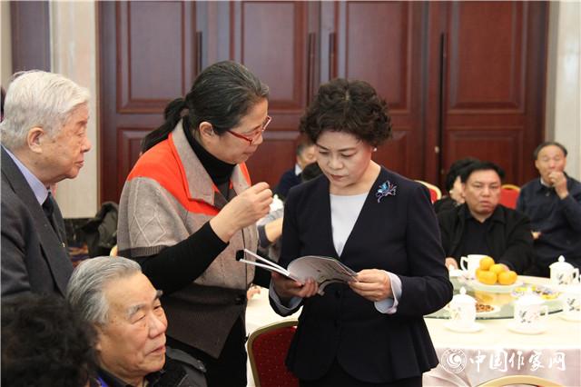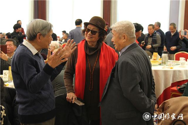 茶話會(huì)上,中國作協(xié)黨組書記處同志來到老作家、老同志中間,和新老朋友一一握手,暢敘情誼,共談文學(xué),他們所到之處,不時(shí)傳來陣陣歡聲笑語。有的老作家拉著鐵凝、錢小芊談文學(xué)、說友情,也給中國作協(xié)新一年工作提出自己的建議;有的則拿出自己剛出版的作品,贈(zèng)送給現(xiàn)場(chǎng)的親朋好友;還有的三五好友相聚,紛紛取出手機(jī)拍照,記錄下這美好難忘的一刻……