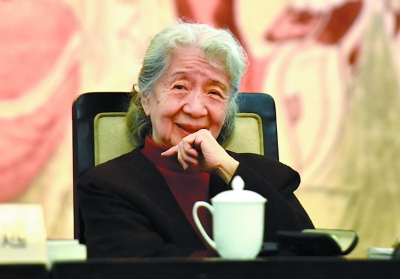 “不要說我老了,我走不動了,我不干了,‘老牛自知黃昏晚,不待揚鞭自奮蹄’,我能干多少就干多少。”雖已步入耄耋之年,老人對工藝美術的現狀依然常存牽掛。她以自己研習的敦煌壁畫為例,由于使用的是礦物顏色,畫中山水與現代水墨全然不同,“它以土紅色為主,還伴隨有石青、石綠,即便是紅色,它還可以細分為冷調色、暖調色,變化太多了。”在她看來,如今各種設計舞臺上的大紅、大綠就顯得近乎無知了。“要首先虛心去研究、學習老祖宗的東西,然后再談如何運用。不花心思學習,結果就是瞎運用。”