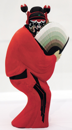 在現場展出的一百多件作品當中,既有紅樓、聊齋等古典文學題材,也有民族系列和生肖系列,還有反映“一帶一路”等時代主題之作,觀者獲得的是民間藝術與現代審美結合的全新視覺體驗。在他的作品當中,既能夠體會到傳統“泥人張”技藝手法的神韻,又可以感受到色彩學、構成學、裝飾藝術乃至許多國外視覺藝術的影響。他在“泥人張”傳統的具象藝術和現代抽象藝術之間,在古老技藝和當代生活之間,尋找到一座貫通的橋梁,通過現代設計手段,實現了傳統與現代的和諧交織。