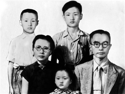 1946年,朱自清夫婦與子女的合影,后排右一為朱喬森。