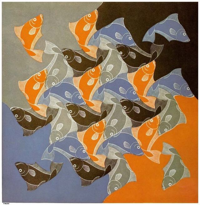 埃舍爾的版畫形象地表現出事物彼此之間的無窮聯系和影響,傳達了完整和諧的整體結構所給予人的美的啟悟。從文化觀念層面而言,這種整體的神話一樣發人深省,具有它獨賦的魅力。個體乃是在整體的派定下顯示出它的角色意義,而整體則作為具有穩定性與確定意義的超越的所指,作為君臨個體之上的力量。這是一種秩序化的安全的理性神話,它是失去依附的個體精神的暫時棲息地,令人產生具有宗教意味的完滿感。