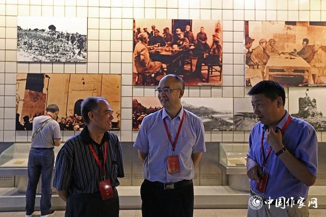 平津戰役紀念館是為紀念平津戰役的勝利所建,由聶榮臻元帥親筆題寫館名。館內藏有文物6000多件,為文學創作提供了珍貴的歷史資源。在館長王培軍的帶領下,采訪團走進紀念館,從戰役決策、戰役實施、人民支前、偉大勝利到英烈業績,每一部分都包含著人民解放軍血和淚的付出。其中一張士兵們光著腿趟水過河的照片引起了團員們的注意,館長告訴大家,因當時水上結冰,若穿上棉褲,棉褲會被凍成冰塊拔不出來,于是士兵們就光腿在冰水中行走,很多士兵后來都截肢了。每一幅圖片、每一個文字背后都有一段值得講述的感人故事,團員們認真聆聽、記錄,并表示要用優秀的文學作品書寫、歌頌這些無名英雄。