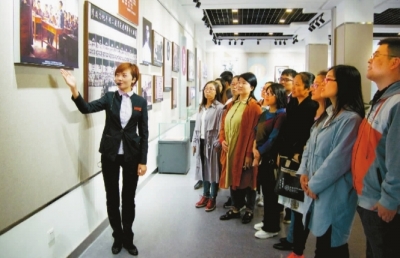 江蘇省淮安市周恩來紀念館講解員謝美霞為參觀者講述少年周恩來“為中華之崛起而讀書”的故事。新華社記者 朱筱攝