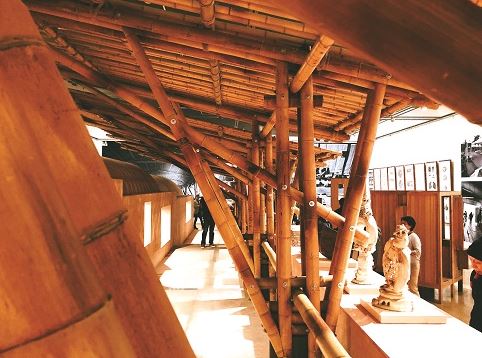 學院在教學創作中號召師生扎根生活,倡導“勞作上手、讀書養心,像哲人般思考、如工匠般勞作”的理想,就是希望能繼民學精神,再興鄉土生活,借藝術讓人民的生活更美好?!拔铱椢以凇薄氨就翣I造”“天工開物”所呈現的便是貫徹這一理念的教學最新現場。在“我織我在”的空間中,數百條由師者編織的千變萬化的繩結里,貫穿著數組學生的編織作品,讓觀者體驗到“身心發動、情義直觀”的東方藝術真諦,也感悟到上手的技藝與造物思想的關聯;“天工開物”則向我們展現了陶瓷、漆器、玻璃、首飾等與棲居空間相融相依的手工藝品;“本土營造”聚焦于“復興融通自然、城市、建筑和造園的整體性”之大命題,這個極具泥土氣息的營造現場,背后凝聚了大量的鄉土調查與實踐摸索。
