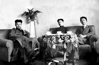 李何林(中)與未名社成員王青士(左)、李霽野在一起。