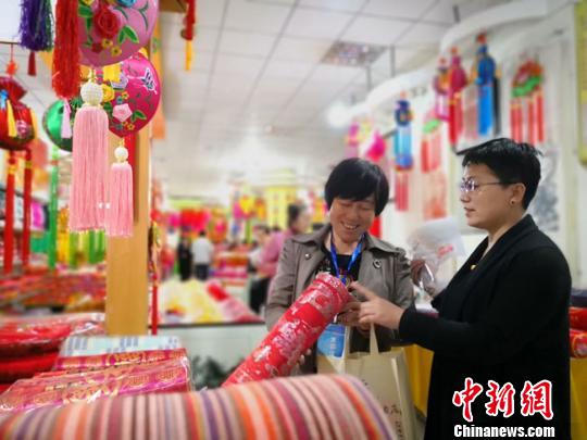 圖為國內(nèi)賓客參觀國家級非物質(zhì)文化遺產(chǎn)慶陽香包繡制。 魏建軍 攝