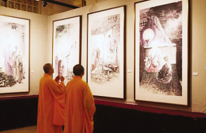 近日,劉居時六祖故事畫展在上海玉佛禪寺展出。共展出著名書畫藝術家劉居時以六祖惠能大師生平故事為主線創作的62幅系列故事畫。
