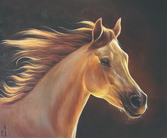與學(xué)院派不同,廣亮的油畫作品有著規(guī)范之外的風(fēng)格和靈氣,帶著鮮明的個(gè)性標(biāo)簽。隨著個(gè)人繪畫風(fēng)格的漸趨成熟,廣亮的駿馬畫既有西洋畫法重結(jié)構(gòu)的嚴(yán)謹(jǐn),更有傳統(tǒng)國(guó)畫重神韻的靈性。廣亮以特寫的手法畫馬,使畫面力度倍增,以動(dòng)為主,虛實(shí)相生。擯棄多余的襯景,把馬置于浩瀚的宇宙時(shí)空中,在氣勢(shì)逼人、排山倒海的視覺震撼下,形成畫面張力,讓馬最大限度地騰挪跳躍于天地之間。這樣既突出了主題物象,又使畫面開闊深遠(yuǎn),給人以無限遐想。2016年7月9日和2017年3月24日,在眾多臺(tái)灣媒體的見證下,黃廣亮的駿馬油畫作品《追夢(mèng)》和《報(bào)捷》被時(shí)任中國(guó)國(guó)民黨主席洪秀柱鄭重收藏于臺(tái)北。全國(guó)百余家媒體追蹤報(bào)道了此事,廣亮不僅成為現(xiàn)象級(jí)畫家,還促進(jìn)了兩岸文化交流,受到全國(guó)政協(xié)領(lǐng)導(dǎo)表?yè)P(yáng),榮獲文化使者的美譽(yù)。