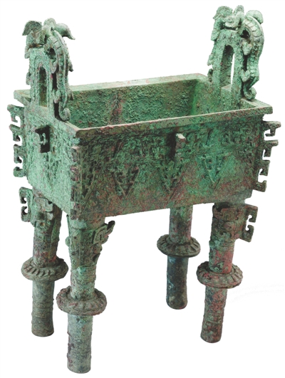 柱足上裝飾扉棱,柱足中部裝飾圓盤,在商周青銅器中獨一無二。歷史價值與藝術(shù)價值極高,堪稱國之瑰寶。