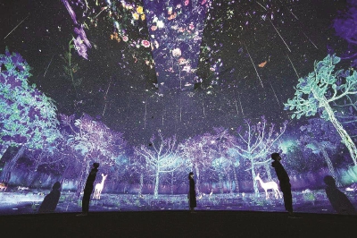 另一個為人熟知的沉浸式展覽,是日本新媒體藝術團體Team lab去年在佩斯北京畫廊舉辦的中國首展《花舞森林與未來游樂園》。這也是其全球巡展的一個重要部分。成立于2001年的日本科技藝術團體——Team lab,團隊成員近400人,包括藝術家、計算機工程師、建筑師、CG動畫師、應用設計師甚至數學家等。他們利用新媒體技術與觀者產生互動,形成極具想象力的浸入式觀展體驗。