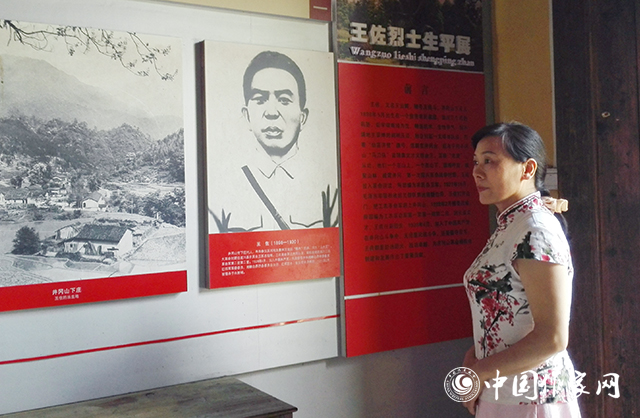 曠胡蘭在井岡山下莊村王佐故居觀看王佐烈士生平展