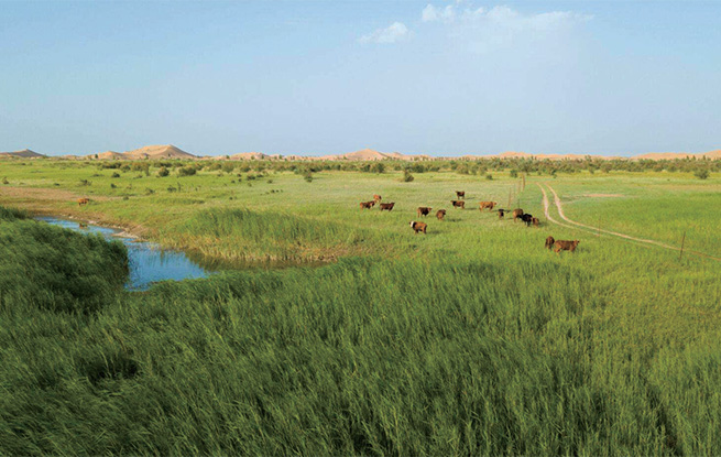 去年,庫布其沙漠國際論壇和《聯合國防治荒漠化公約》第十三次締約方大會相繼在鄂爾多斯召開。這兩個世界生態界的盛會,吸引了全世界的目光。鄂爾多斯沙漠翻天覆地的變化,撞擊著我,感動著我,激發著我的創作激情。實際上,我的創作激情是從鄂爾多斯大漠中長出來的,真不是采風采來的。因為我筆下的人物,大多是我的稔熟朋友。我從來就是他們當中的一員,只不過是在荒漠化治理的偉業中有不同的分工罷了。我感謝鄂爾多斯大地給予了我那么多的創作靈感。對一個作家來說,有一片生于斯長于斯的土地就足夠你展示文學才華和文學抱負了。
