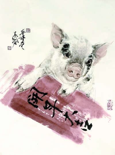以寫意見長的中國畫需要經過長期觀察摸索,提煉出一套筆墨表達的程式,方能對“十二生肖”得心應手。如果說其他生肖還總有為數不少的畫家在研磨,那么,遍觀畫史,惟獨以豬入畫者甚少,甚至有豬不入畫之俗。原因無外乎有二。其一,豬的形態多給人以臟懶之感,在題材上就輸了半截;再者,贈人以畫,若畫上一頭肥豬,豈非有不敬之嫌?