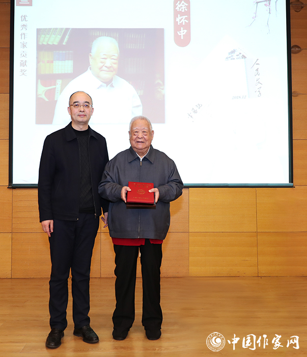 程紹武為優(yōu)秀作家貢獻(xiàn)獎(jiǎng)獲得者徐劍頒獎(jiǎng)