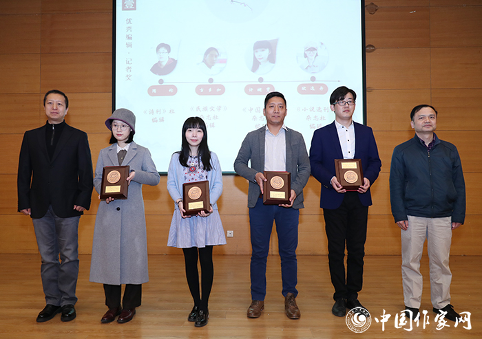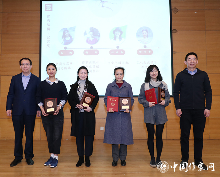 2018年度中國作家出版集團(tuán)獎(jiǎng)共評(píng)選出優(yōu)秀作家貢獻(xiàn)獎(jiǎng)5名,優(yōu)秀編輯(記者)獎(jiǎng)8名,優(yōu)秀組織管理獎(jiǎng)2名,致敬·資深編輯獎(jiǎng)2名,特別貢獻(xiàn)獎(jiǎng)1名。徐懷中、莫言、余華、徐劍、肖勤榮獲優(yōu)秀作家貢獻(xiàn)獎(jiǎng);王婉、錢英、任晶晶、楊海蒂、隋倫、吉多加、許婉霓、歐逸舟榮獲優(yōu)秀編輯(記者)獎(jiǎng);宋向偉、李頓榮獲優(yōu)秀組織管理獎(jiǎng);李星、林建法榮獲致敬·資深編輯獎(jiǎng);長(zhǎng)篇小說選刊雜志社榮獲特別貢獻(xiàn)獎(jiǎng)。