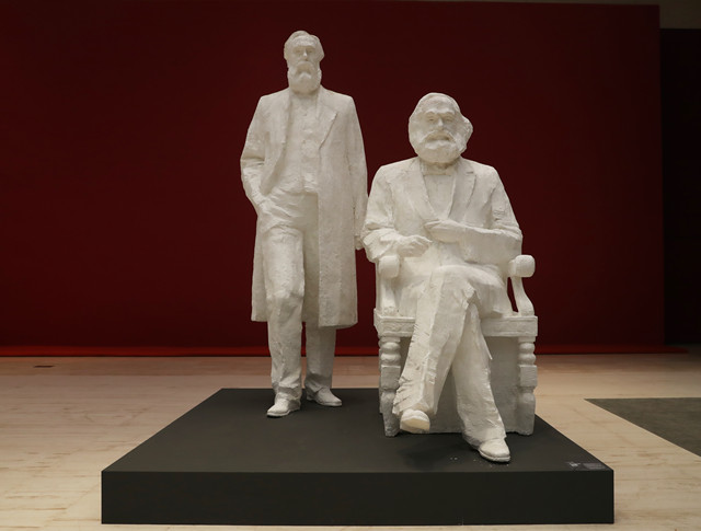 一樓大廳最引人注目的是卡爾?馬克思的青銅雕像,馬克思是全世界無產階級和勞動人民的革命導師,無產階級的精神領袖。這尊雕像于2018年5月5日在馬克思的家鄉德國特里爾市落成,特里爾市市長萊博說:“馬克思雕像重新變得栩栩如生,他的思想理念得以在21世紀以視覺文化的方式呈現出來。”