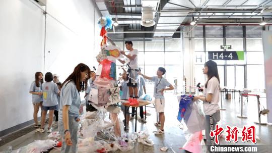 據介紹,該活動分三部分組成,先由藝術家們開設一場立體藝術的課程學習,讓孩子們明白裝置藝術的理念、構成元素與創作要點;隨后孩子們在藝術家、老師的帶領下,使用自帶的10個已使用過的塑料袋進行個人作品創作,現場作出屬于個人的藝術品;最后由國內外當代藝術家共同合作,將藝術家自己的作品和孩子完成的作品組合成一件大型的裝置藝術作品。