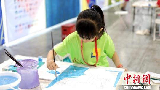 孩子在認真地繪制作品。 徐明睿 攝