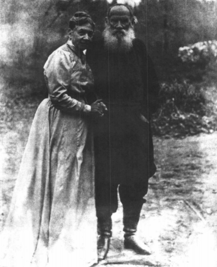 列夫?托爾斯泰與索菲婭?托爾斯泰婭結婚四十八周年紀念照,也是托爾斯泰最后一張照片(1910年)