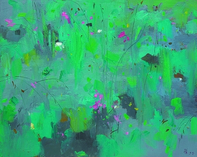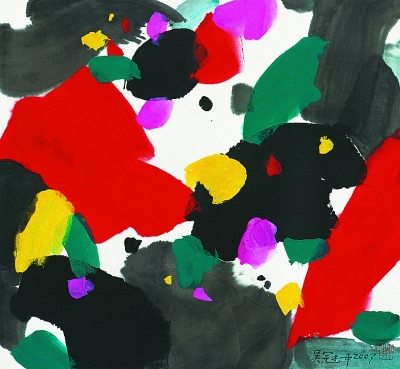 中國的繪畫,所畫往往不是靜止的形狀,而是正在成形之中的世界,如洛神賦的飄搖,如曹衣吳帶的水風飄忽,如宋元山水的玄遠清虛的境界,如梅蘭竹菊亦影亦神的意寫。它并不虛擬另外一個世界,而是不斷地帶著我們回溯某個可見的源頭,從那里面對晦明之間、有形與無形之間、可見與不可見之間、此刻與恒永之間的萬千意象,繪畫的意象正隱匿或浮現在這漫無涯際的“之間”的間性之中。藝者的使命就是義無反顧地涉入其中,發力鑿開這混沌的一片,讓生命的意象悄然顯身。吳先生深諳東方藝者的這份特性,真實地站在大地上,沉醉于“祖國之土”的呼吸吐納,依著他的艱辛而豐饒的人生經歷,依著他的超拔的心靈與精神自由,在生命的持續危難中閱讀“間性”的氣象,鑄煉詩的啟蒙與超越。吳先生的藝術為“后繪畫”時代的世界藝堂提供了某種源于東方又不止于地域性的“間性”的典型。這正是吳先生藝術的內涵,正是吳先生自比趙無極先生絕無愧色、而世界也同樣選擇了吳先生的底氣。吳先生秉著這種“間性”的韻息和敏銳,建構起他的詩性的田園。這個田園風箏不斷線,始終存留著東方式的直觀和意態,以避免樣式的模仿與空泛。這個田園不承認沒有內容的筆墨,以放骸的揮灑引領時代新風。這個田園將人生的苦情與藝術的苦心煮在一起,熬成一份有些苦味、卻沁人心脾的畫卷。