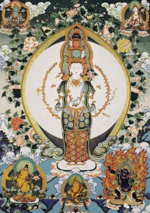 唐卡,系藏文音譯,原指用彩緞裝裱后懸掛供奉的佛教畫像,是藏族文化中獨具特色的繪畫形式,是中華民族繪畫藝術(shù)的珍品。唐卡顏料采用金、銀、珍珠、瑪瑙、珊瑚、松石、孔雀石、朱砂等珍貴的礦物材料,間用藏紅花、大黃、藍(lán)靛等植物為輔料。這些天然性材質(zhì)保證了唐卡的色澤鮮艷,璀璨奪目,可經(jīng)幾百年的歲月浸染仍保持色澤艷麗明亮。