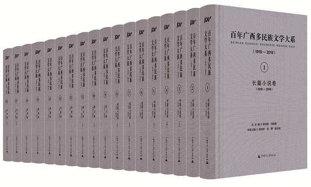 于是,便有了碩果《百年廣西多民族文學大系(1919-2019)》。時值新中國成立70周年,大系成竹在胸地展示了百年廣西文學的風貌,帶著鮮明的歷史蹤跡、美學風格和經(jīng)典化過程,便具有了紀念碑的意義。