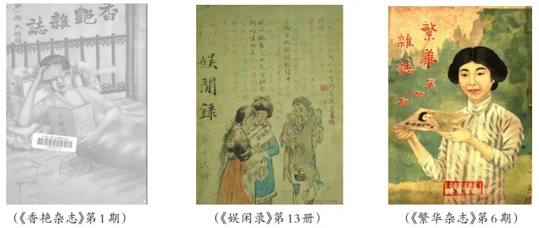 可以看到,從1914年至1915年,在《小說新報》《中華小說界》《禮拜六》《香艷雜志》《娛閑錄》《繁華雜志》等小說雜志(或主要刊登小說作品)的封面上,都出現了一個性別化了的小說讀者,為我們連綴出了一幅民國初年女性小說閱讀網絡、接受網絡和傳播網絡的全景圖畫。在前四幅封面上,閱讀的女性獨自出現在窗下、桌前、床邊等私人領域,“她們”眼簾朝下,嘴角微微上揚,手中捧著正在津津有味閱讀的,正是該雜志本身。在后兩幅圖畫中,女性成群出現在林蔭與戶外等公共領域:《娛閑錄》上的三位女性年齡各異,正聚集在一處討論著什么;而《繁華雜志》上這位手捧雜志的女子,正在將該刊遞向他人。圖片上隱去的這位“對面人”,是她的愛人、閨友還是其他什么人呢?這為讀者留下了豐富的想象空間。雜志的封面常常被看作是一個刊物的形象代言人,“女性讀者”的出現,構成了“女性”與“小說”關系的兩種隱喻:一方面,這些讀書女性的倩影被繪制成封面圖畫,通過購買和閱讀,走向一個更加廣闊的公共空間;另一方面,它也將隱含在閱讀空間中的女性讀者物品化、風景化、公共化,進而與雜志的商品屬性實現某種“同構”。從這樣一個角度來講,“女性”與“小說”堪稱一而二、二而一,共同打造了一個都市商品文學的風景線。