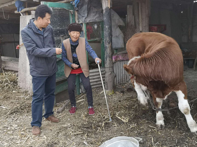 任林舉(左)在洮南市碳窯村采訪(fǎng)