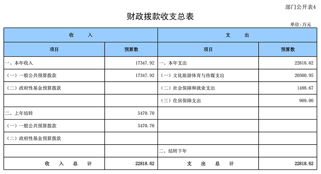 四、財政撥款收支總表
