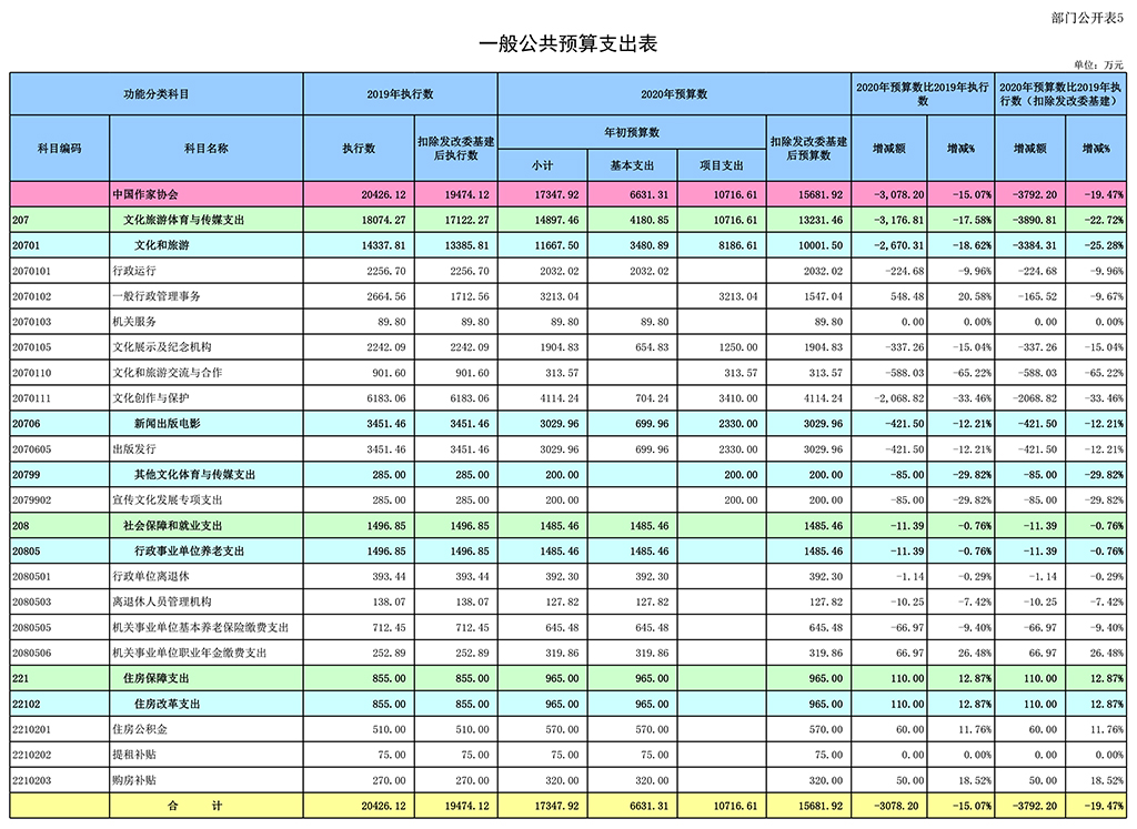 2020年中國作家協會部門預算報表如下: