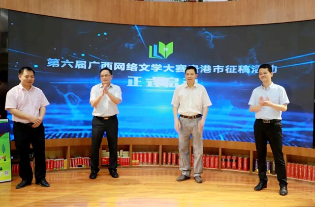 最后,由出席啟動儀式的四位領(lǐng)導(dǎo)一同上臺,宣布第六屆廣西網(wǎng)絡(luò)文學(xué)大賽貴港征稿儀式正式啟動。