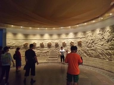 蘭州的黃河有鐵橋,硬朗,深邃。我們站在鐵橋一邊欣賞對岸夢幻仙境一般的亭臺樓閣燈光造影。詩人郭曉琦是個好導游,聽他講這座城市的故事,我感到自己與蘭州更近了。8月16日,我們去了甘肅省博物館。