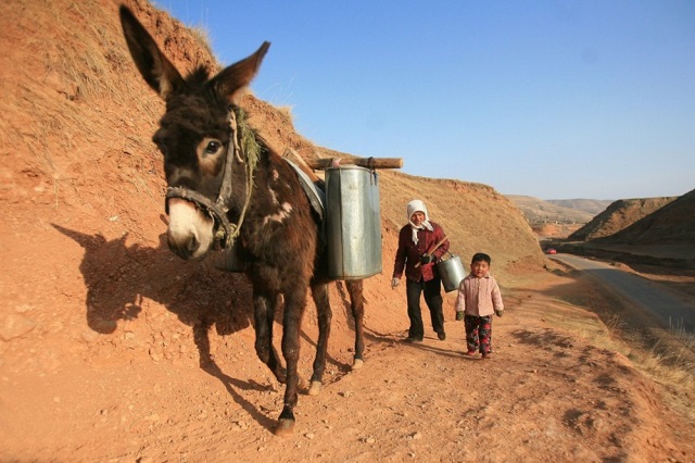因為極度缺水,西海固人曾經(jīng)習(xí)慣了驢馱水(季正 攝)