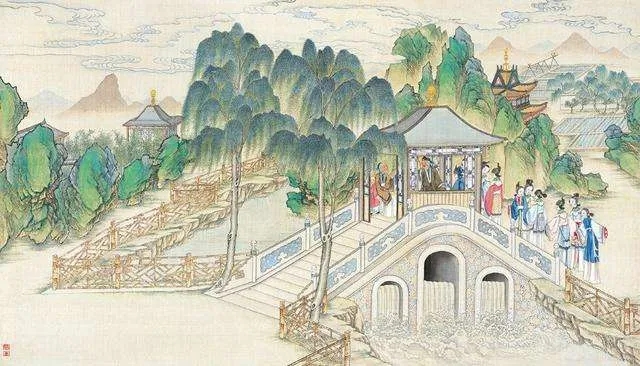 中國傳統園林更接近瑞安所說的英國園林的理念。孫筱祥認為,中國園林是空間與時間的綜合藝術,很多地方體現出中國山水畫運動視點的動態構圖:“園林中每一局部,當游人視點固定時,其所感受的空間,與繪畫的靜態構圖相似;但是游人從進園開始,隨著游覽路線從一個局部走向另一個局部,移步換景,有隱有顯,這種一景接一景連續出現的風景布局,屬于動態連續風景構圖。”[14]這種移步換景的動態園林結構,在《紅樓夢》中有各種體現。宋淇將其歸結為“透露法”:“《紅樓夢》用的是逐漸透露法,猶如一幅長江萬里圖,一路緩緩展開,一路漸漸呈現,不能一覽而盡。”[15]