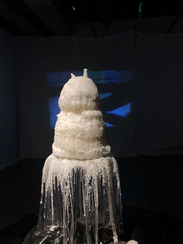 當(dāng)外界的產(chǎn)物無法真正療愈內(nèi)心的時候,沉浸下來審視真正的自我變成了人生中重要的課題。此次“孤獨療愈室”展區(qū)用絲綢布簾分割開,營造出昏暗的環(huán)境讓觀展者沉浸自我,思考探索本我的存在。謝釵和Vasin這兩位藝術(shù)家都運用了多媒體作為表達媒介。他們的作品都主動包容了觀眾的主觀意識,加深了觀者精神和空間上的體驗。聽覺、視覺和觸覺均得到滿足。同時他們的作品中也包含了中國傳統(tǒng)思想的影響,體現(xiàn)出了作品極大的包容性,消融了過去與現(xiàn)在的界限。