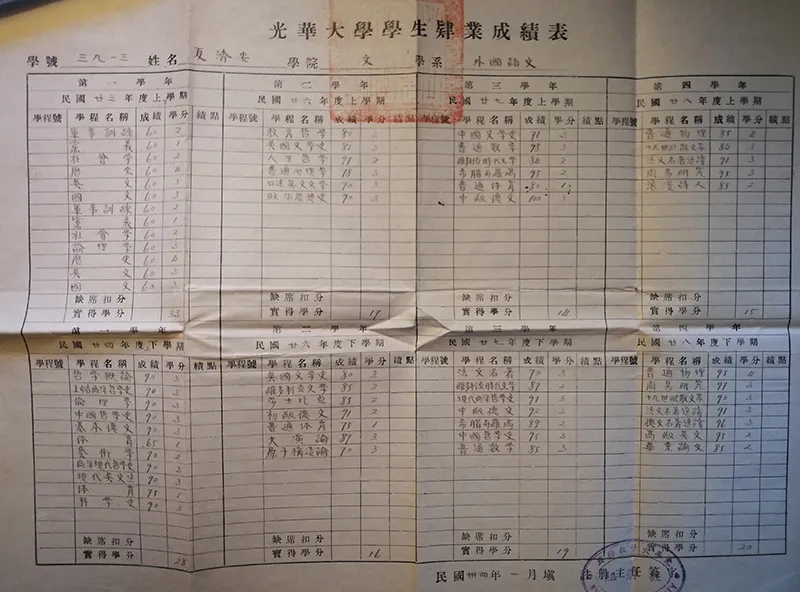 夏濟安光華大學成績單