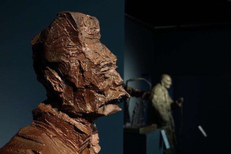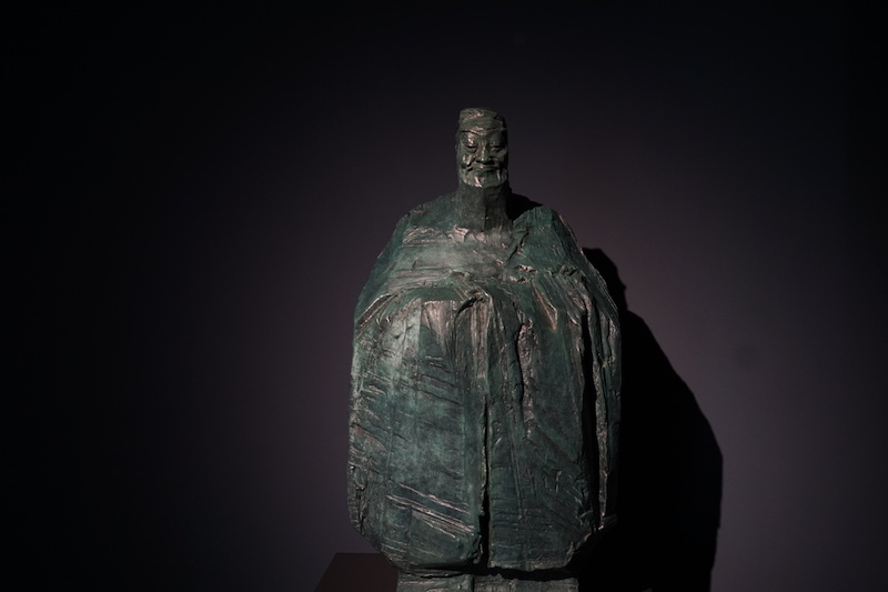 近日,“中華文脈 寫意之美——吳為山中華歷史文化名人雕塑作品展”在國家大劇院開幕,展覽展出了雕塑家30余年間積累創作的中國歷史文化名人雕塑70余件。展覽以“巍然成山——孔子”與“天人合一——老子”開啟,這兩件雕塑較有裝飾性,又進行了抽象與夸張,如孔子的身體上刀刻斧削般硬朗的線條有著山體的質感;而老子中空的身體則隱喻了“虛懷若谷”。