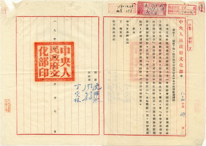 1950年12月27日,文化部批復同意成立中央文學研究所 資料圖片