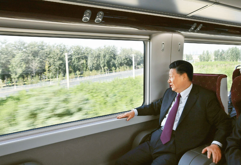 ↑2019年9月25日上午,北京大興國際機場投運儀式在北京舉行。中共中央總書記、國家主席、中央軍委主席習近平出席儀式,宣布機場正式投運并巡覽航站樓。這是習近平乘坐軌道列車前往北京大興國際機場。 新華社記者 謝環馳/攝