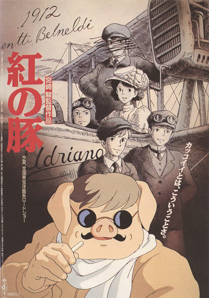 在亞得里亞海的蔚藍上空,有一抹鮮艷的紅色瀟灑地穿梭于云間,這就是波魯克駕駛的紅色水陸兩用式飛機。在宮崎駿導演的動畫電影《紅豬》開頭,一群活蹦亂跳的小學生被空賊劫持,波魯克駕著有故障的飛艇仍然輕松打敗空賊曼馬由特隊,贏得了不菲的賞金。僅看開篇,這似乎是一個孤膽英雄的老套故事。但這個本該有著英俊面龐的家伙身材發福走形,竟然還長了一張胖胖的豬臉,幾乎類同千尋的爸媽偷吃食物后變成豬的樣子。