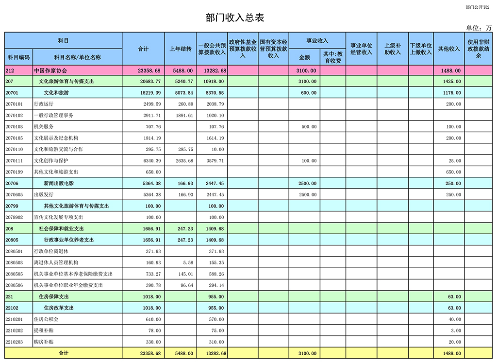中國(guó)作家協(xié)會(huì)2021年收支總預(yù)算23358.68萬(wàn)元。