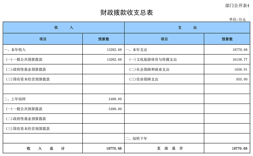 四、財(cái)政撥款收支總表