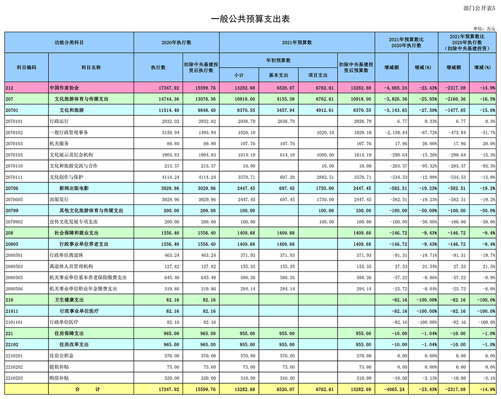 五、關(guān)于中國(guó)作家協(xié)會(huì)2021年一般公共預(yù)算支出表的說明
