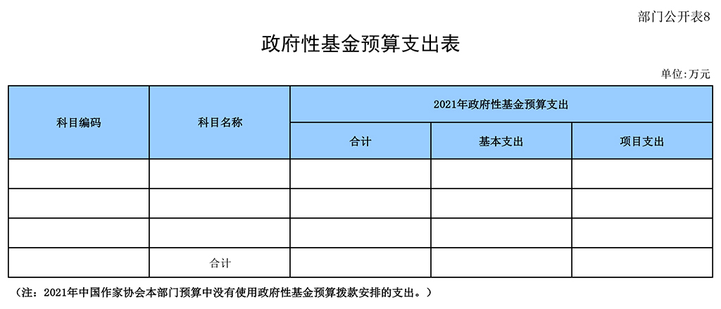 2021年中國(guó)作家協(xié)會(huì)部門預(yù)算報(bào)表如下: