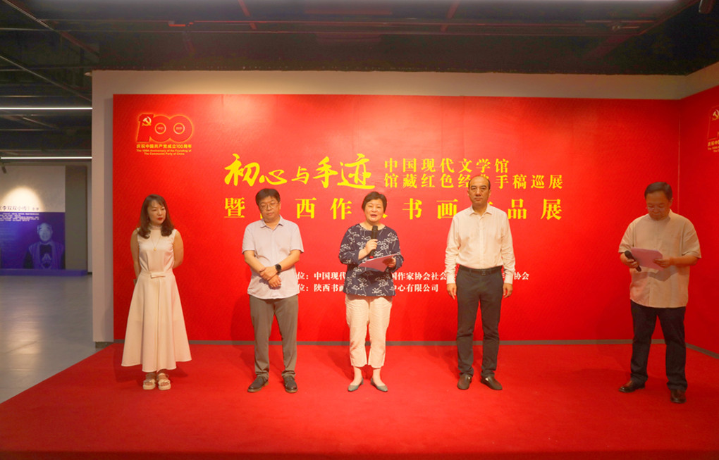 6月7日,由中國作協社會聯絡部、中國現代文學館、陜西省作家協會主辦,陜西書畫藝術品交易中心有限公司協辦的“初心與手跡——中國現代文學館館藏紅色經典手稿巡展暨陜西作家書畫作品展”在西安開展。該展覽是“中國作家陜西文學周”的序曲和系列活動之一,旨在以展覽的形式慶祝中國共產黨百年華誕。開幕式由陜西省作家協會秘書長、機關黨委副書記王曉渭主持,陜西省作協工作人員、老干部、作家及文學愛好者在開幕式后參觀展覽。