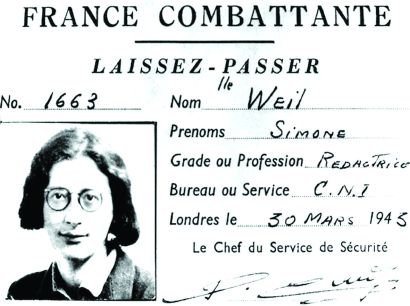 納粹占領期間,薇依參加抵抗運動時的通行證