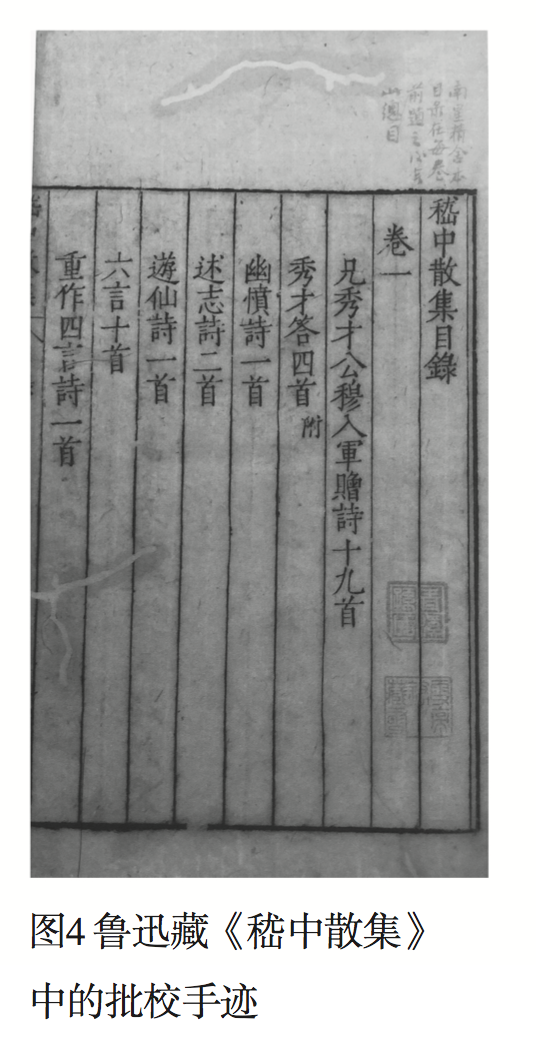 24以今存魯迅藏明萬歷汪士賢輯《漢魏六朝諸名家集》中《嵇中散集》的閱讀痕跡為例: