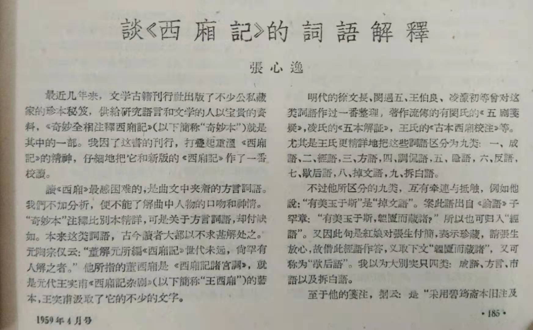 張心逸《談<西廂記>的詞語解釋》