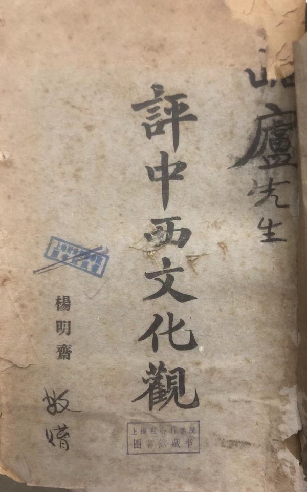 楊明齋簽贈王云五的《評中西文化觀》(上海社科院圖書館藏)